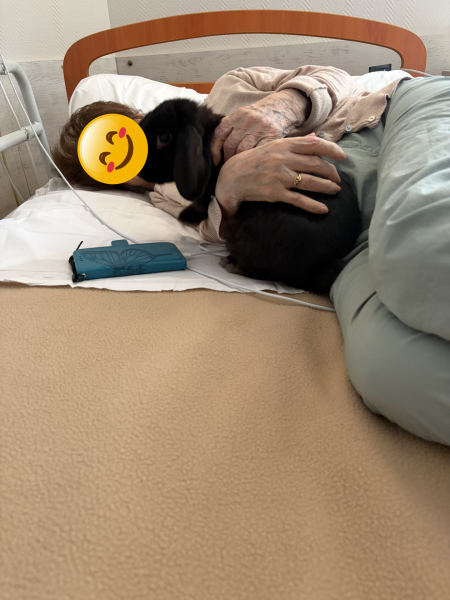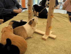 Lors de la dernière séance, la thérapeute est intervenue en salle de restaurant pour un temps collectif empreint de douceur. Lapins et hamsters ont rapidement attiré l’attention, suscitant sourires, échanges et souvenirs. Le contact avec l’animal, à la fois apaisant et stimulant, favorise la détente, réveille les sens et encourage la communication entre les résidents.