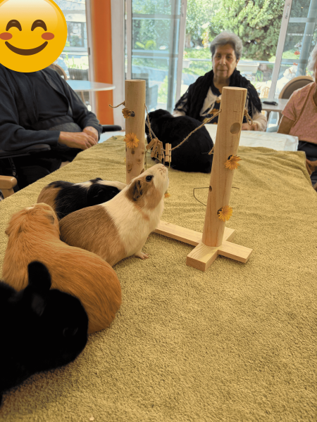 Au Château de la Brague, les interventions non médicamenteuses occupent une place importante dans l’accompagnement des résidents. Parmi elles, la médiation animale 🐹🐰, proposée deux fois par mois, s’impose comme un rendez-vous attendu et toujours apprécié.