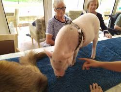 Une fois de plus, la venue de Jennifer a fait vivre de grands moments de bonheur aux résidents du Château de la Brague à Antibes. Le beau cochon "Merlin" est devenu la mascotte de tous.