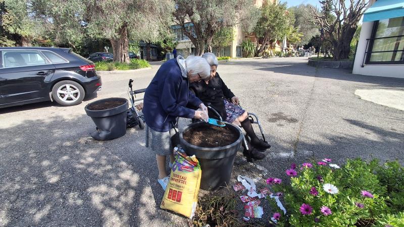 Durant le mois de mars, dans notre résidence, une douce activité a pris vie autour du jardin thérapeutique. Un matin, avec l’animateur, quelques résidentes ont profité du beau temps pour s’installer dans le parc. Le soleil était là, l’air était léger, et les mains se sont mises à toucher la terre, planter, sentir. Un moment simple, mais précieux. On échange, on sourit, on se rappelle des jardins d’autrefois.